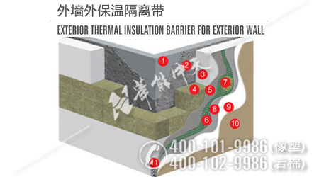 外墻防火保溫巖棉帶規(guī)定保溫材料的燃燒性能不低于B2級(jí)。